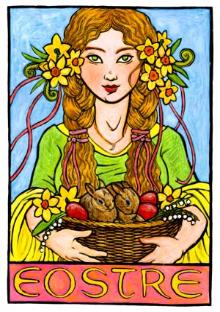 WAYS TO CELEBRATE OSTARA Bring spring flowers into your home and to stay in tune with the theme of balance, give some of them to others. It doesn't have to be expensive, one or two blooms given for no other reason than 'spring is here' can bring a smile to a gloomy face. Do a little 'personal housekeeping'. We live in an age where guilt is often encouraged and we dwell on our 'negative' points and habits. THIS IS NOT THE WAY OF THE WITCH! As a Witch, we need to learn to be as honest about our plus points as society would like us to be about our minuses. Advertising is probably the most pervasive kind of propaganda encouraging us to think of ourselves as 'less than perfect' and selling us products, equipment or apparel to make us look like the people in the advertisements. Think of this, if we actually needed those products and more importantly, if they worked as advertised...there would be no need to advertise them, we would buy them without being told to. But, returning to 'personal housekeeping', make a list of 5 plus points, things you are good at. Then make a list of 5 minus points, things you would like to improve. Make sure the things you put on your minus list are things you can actually change, then work toward making those changes. One of the first tasks of the Witch is to understand and accept themselves, good and bad points both. It is only when you understand yourself that you will be in a position to understand others. That is a good portion of a Witches' Magick. Start a tradition of going to a field and randomly collecting wildflowers.* Or, buy some from a florist, taking one or two of those that appeal to you. Then bring them home and divine their magickal meanings by the use of books, your own intuition, a pendulum or by other means. The flowers you've chosen will reveal your inner thoughts and emotions. It is important at this time of renewed life to plan a walk (or a ride) through gardens, a park, woodlands, forest and other green places. This is not simply exercise, and you should be on no other mission. It isn't just an appreciation of nature, make your walk celebratory, a ritual for nature itself. Other traditional activities include planting seeds, working on magickal gardens and practicing all forms of herb work - magickal, medicinal, cosmetic, culinary and artistic. Foods in tune with this day (linking your meals with the seasons is a fine method of attuning with nature) include those made of seeds, such as sunflower, pumpkin and sesame seeds, as well as pine nuts. Sprouts are equally appropriate, as are leafy, green vegetables. Flower dishes such as stuffed nasturtiums or carnation cupcakes are a great way to celebrate with food. These are ideas for your Ostara ritual that will add special meaning to your celebrations. You can color and empower Ostara eggs for health, wealth and prosperity. Celebrate the return of the Goddess by potting plants and giving them to friends and loved ones. (This next one is my favorite), incorporate chocolate into your Ostara ritual! Review the items in your magickal cabinet or box and replace what is needed. Empower the supplies during your Ostara ritual. Bless seeds for your garden. You should hold your ritual at dawn because Ostara is solar driven. The sun moves from mutable, watery Pisces to cardinal, fiery Aries. Aries is a great 'starter' sign, but it manages to dissipate as time passes. Any magick done while the sun or moon is in Aries should be supplemented with other workings later on. *Thank the flowers for their sacrifice before picking them and make sure you aren't trespassing on private property. Solstice Again did the earth shift Again did the nights grow short And the days long And the people of the Earth were glad And celebrated each in their own ways. Author Diane Lee Moomey THE VERNAL EQUINOX In 2015, spring begins with the vernal equinox on March 20 at 7:45 P.M. CST. The beginning of the spring season. This festival's familiar symbols of rabbits, pastel-colored eggs, and bright spring flowers are sweet and romantic. Look around you; everywhere in nature there are signs of life returning to the land. To bring a bit of this natural magic indoors, pick up a pretty pot of blooming bulbs. Try tulips for love, or daffodils for chivalry and honor and take them home to brighten things up. Perhaps you can jazz them up a little by tucking some moss over the soil or adding a festive bow or tiny colored eggs to the container. Enchant these spring flowers for fresh starts and good luck. Light a soft green candle and call on the Goddess of spring, Eostre, to work this Sabbat spell for new beginnings and to increase the positive things in your life. Ostara begins our season of Spring, good luck, joy and cheer these flowers do bring. Eostre, bless my home, family and friends, May your love and blessings never end. Ellen Dugan (from Llewellyn's Witches datebook 2006) Spring Cleaning Spring cleaning (new beginnings) Sunrise observance (to celebrate the growing light of the sun) Planting seeds or starting a Magickal Herb Garden. Take a long walk in nature just for the purpose of reflecting on the Magick of nature and our Great Mother and Her bounty. Have a traditional breakfast of buns, ham and eggs. Moon cakes or hot cross buns are round and marked on top with a cross dividing it into quarters. This symbolizes the quarters of the moon and the four elements. On Ostara Eve, light a purple or violet candle and burn patchoulli incense. Carry them both through the house saying: Farewell to wintry spirits and friends On morrow we greet the spirits of spring. Our blessings to thee as your way we wend And merry we'll meet next winter again Snuff the candle and say: Merry meet, merry part and merry meet again. |