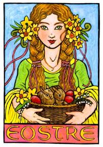 ALTERNATE NAMES Eostre's Day, Spring Equinox, Vernal Equinox, Eiber, Bird Festival, Bacchanalia, Lady Day. SYMBOLS Eggs, Butterflies (cocoons), Lambs, Rabbit (Hare) SYMBOLISM The beginning of spring, new life and rebirth, the God and Goddess in their youth, balance, fertility. COLORS Pale Pink, Lemon Yellow, Grass Green, Robin's Egg Blue, all Pastels. GODDESSES All Moon Goddesses, all Androgynous Deities, (Roman) Anna Perenna, Libera, Minerva, Venus, (Greek) Aphrodite, Athena, Gaia, The Muses, Persephone, (Canaanite) Astarte, (Greco-Roman) Cybele, (Egyptian) Isis, Renpet, (Tectonic) Blodeuwedd, Eostre, (Irish) Flidais, (Assyria-babylonian) Hera, Ishtar, plus many more. GODS All love, song and dance, and fertility Gods, (Roman) Mars, Liber, (Greek) Adonis, Thoth, Pan, (Greco-Roman) Attia, (Egyptian) Osiris, (Celtic) Cernunnos, (European) The Great Horned God, (Persian) Mithras, (Norse) Odin and The Green Man. PLANTS AND HERBS Daffodil, Easter lily, Honeysuckle, Iris, Jasmine, Jonquils, Narcissus, Crocus, Dogwood, Acorn, Peony, Violets and all spring flowers. STONES Aquamarine, Rose Quartz, Moonstone, Amethyst, Jasper. INCENSE AND OILS Jasmine, Rose, African Violet, Strawberry, Magnolia, Ginger. ANIMALS AND MYTHICAL BEASTS Rabbits, Snakes, Unicorns. |